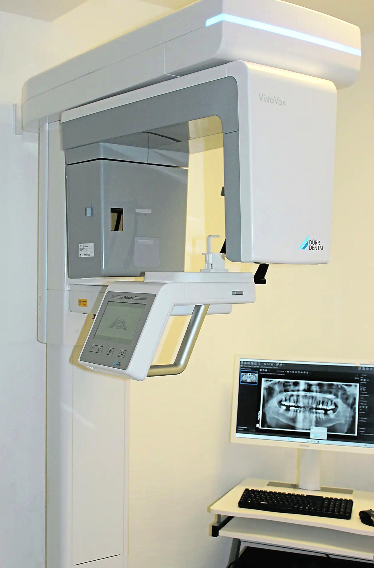 - Digitale Volumentomographie (DVT) ist der Goldstandard in der Implantologie und wird zur Lagebestimmung von Weisheitszähnen, zur Beurteilung der Ausdehnung von Entzündungen im Kiefer oder den Kieferhöhlen und bei komplexen Wurzelbehandlungen genutzt um Eingriffe sicherer und schonender zu planen. Die Aufnahme ist strahlungsarm, schmerzfrei und sehr aufschlussreich, da ein 3-Dimensionales Modell des Kiefers erzeugt und in allen Schichten beurteilt werden kann. Das Bild wird im DICOM-Datensatz gespeichert und Ihnen via Cloud selbst zur Verfügung gestellt. Mit der Erzeugung eines exakten 3-Modells Ihrer Kiefer wird die spätere genaue Rekonstruktion der Bezahnung zum Zeitpunkt der Aufnahme möglich.